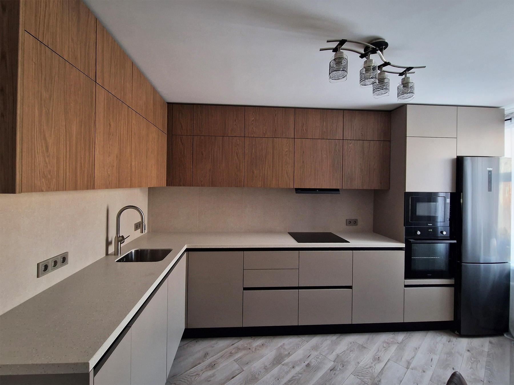 Функциональность. По сути, в просторной кухне нет смысла, если она представляет собой одну большую зону хранения с полками и ящиками. Стоит дополнить шкафы различными механизмами, облегчающими хранение, или бытовой техникой, которая наверняка понадобится.